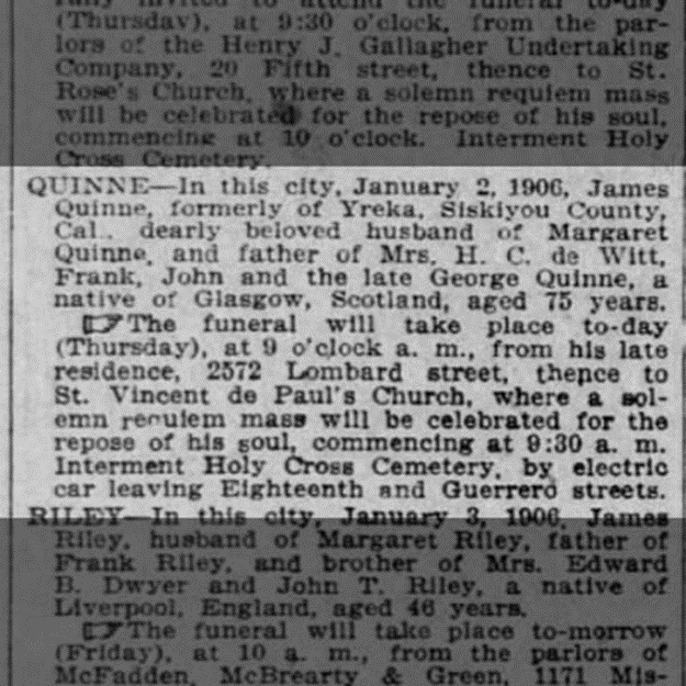Obituary: SF Call, January 2, 1904