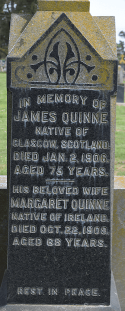 James Quinne came to America in 1854 and married Margret Devine. They had a long and successful life together in Northern California. They had four grown children and a successful career. James was known as the “Pioneer of Siskiyou County” as well as the developer of the first hydropower plant in America.