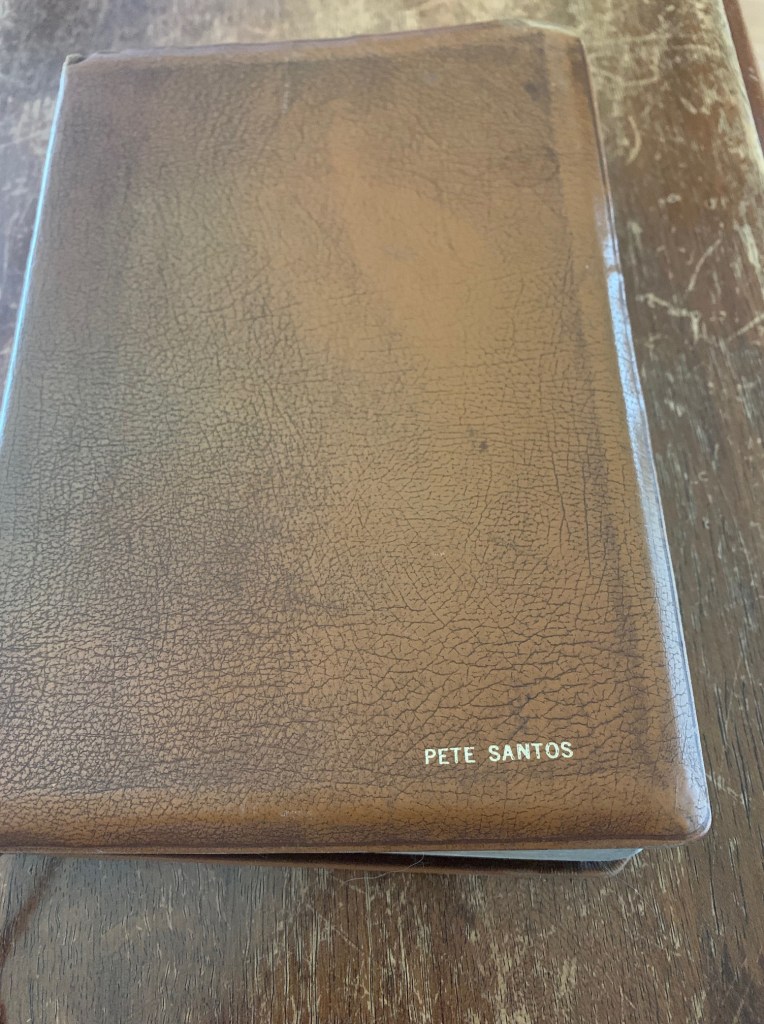 (Pete Santos’ Bible, where the following photo and handwritten note were found)